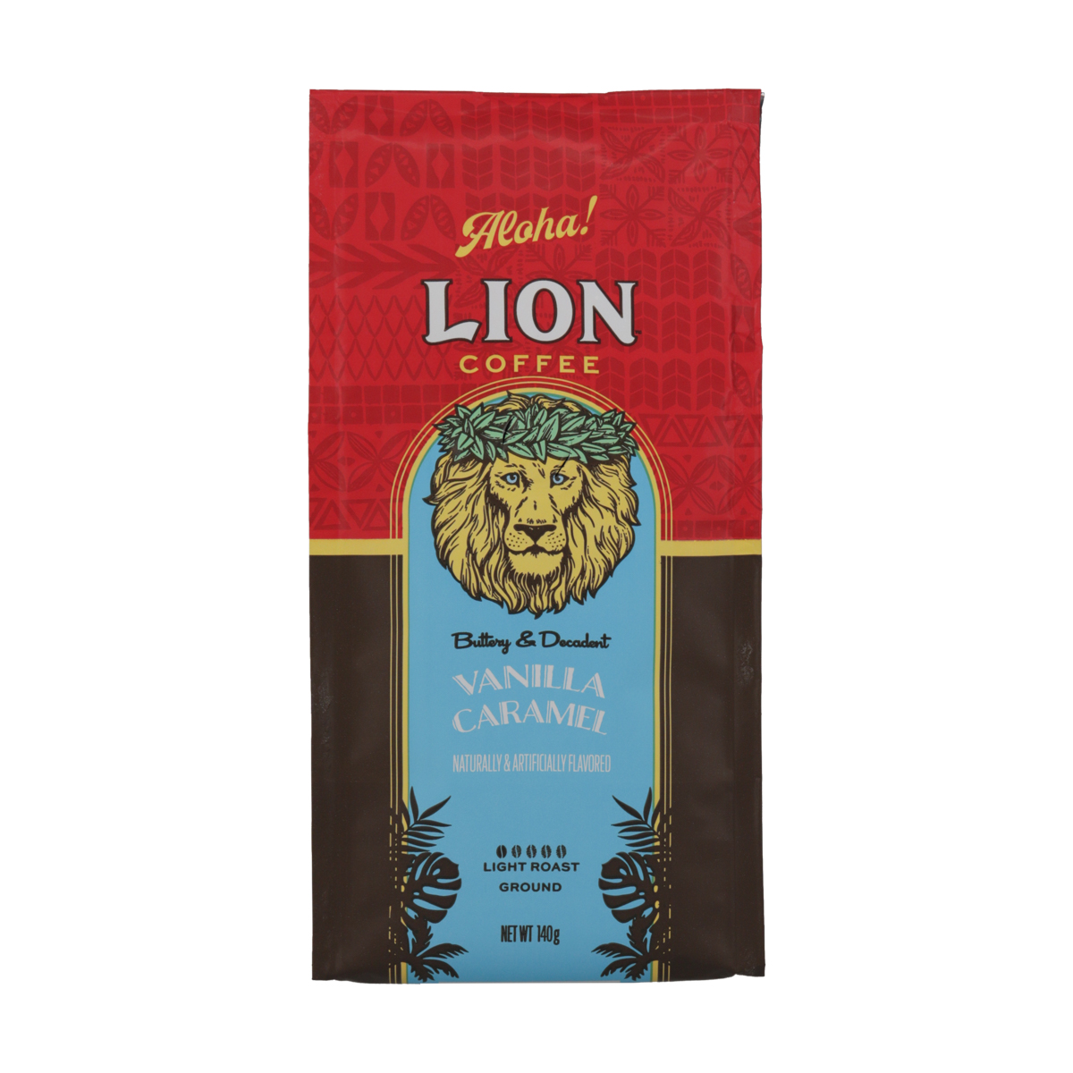 日本でバニラマカダミアナッツに並ぶ人気を誇るのが、ライオンバニラキャラメル。実は、ハワイや米国本土では販売されていない、日本生まれのフレーバーコーヒーです。 バニラとキャラメルの甘い香りのおかげで、砂糖なしでも飲める方が多いと評判のフレーバーコーヒーです。ライト ロースト。